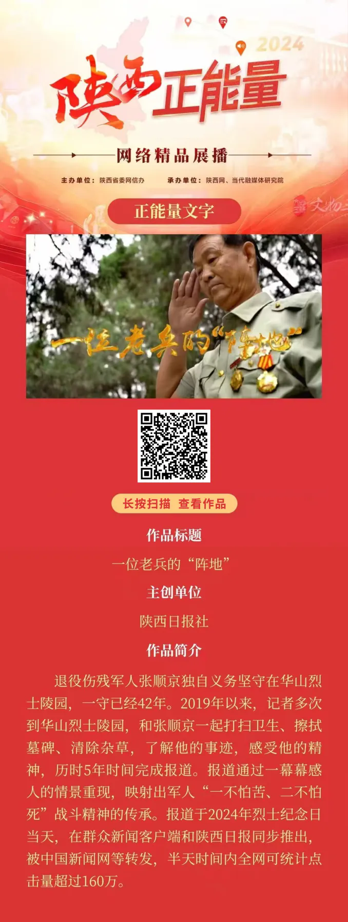 2024陕西正能量网络精品展播丨正能量文字:一位老兵的“阵地”