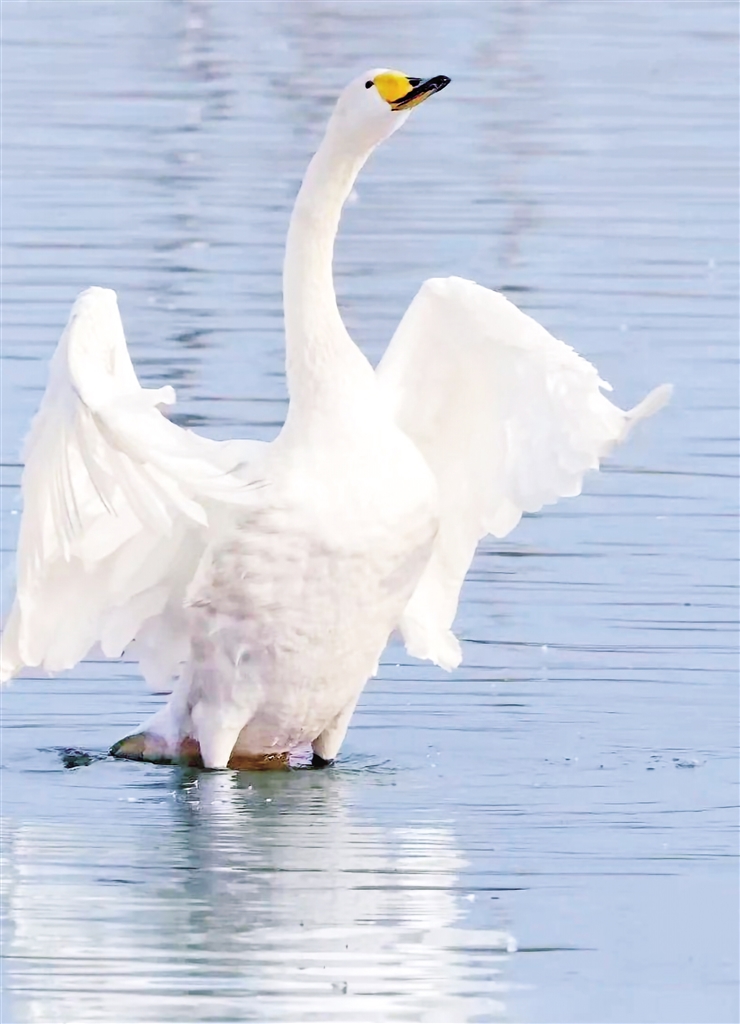 成鸟遍体雪白,仅头顶至枕略沾淡棕黄色。雌雄同色,雌性体型略小。虹膜棕色,嘴黑灰色,上嘴基部两侧黄斑向前伸近鼻孔,蹼、爪等均为黑色。幼鸟全身淡灰褐色,嘴基粉红色,嘴端黑色。小天鹅并非幼年的天鹅,其体型比大天鹅小,脖子更短,嘴上的黄色区域较少。(来源:安康市林学会)3Kr安康新闻网