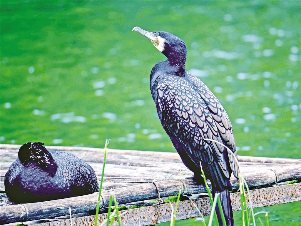 又名水老鸦、鱼鹰、乌鬼、黑鱼郎等。雌雄同型。通体黑色,有绿褐色金属光泽;喙厚重,喙基和喉囊橙黄色,脸颊及喉白色;夏羽颈及头饰具白色丝状羽,冬羽则消失,两胁具白色斑块;亚成鸟深褐色,下体污白。(来源:安康市林学会)aYP安康新闻网