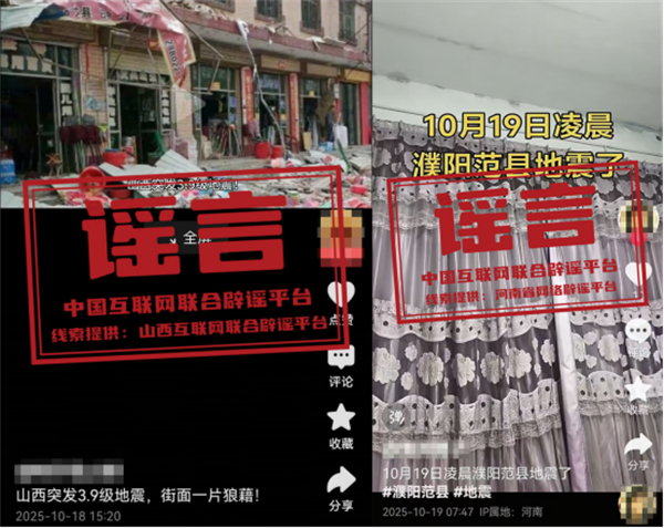 真相:近日,有网民发布“山西突发3.9级地震,街面一片狼藉”的信息,引发关注。经当地相关部门核实,该信息与事实不符。中国地震台网测定,10月18日14时7分,山西省忻州市忻府区(北纬38.58度,东经112.50度)发生3.9级地震,震源深度10公里。省市相关部门派出现场工作队赴震中地区调查,本次地震未造成人员伤亡和财产损失,震区社会秩序正常。另有网民发布“10月19日凌晨,濮阳范县地震了”的信息,经范县防震减灾部门核实,该信息不实。(来源:“山西网络举报”微信公众号、河南省网络辟谣平台)