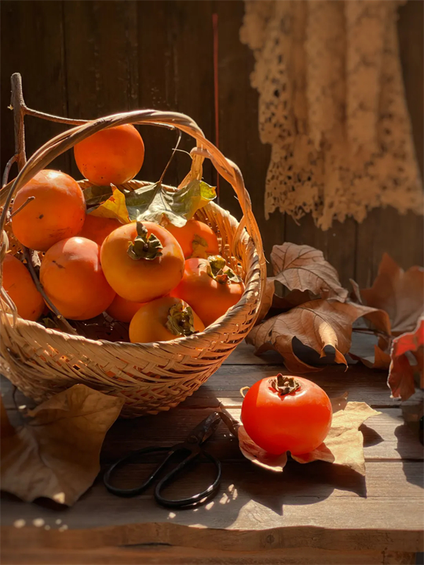 柿子树上,果实累累
