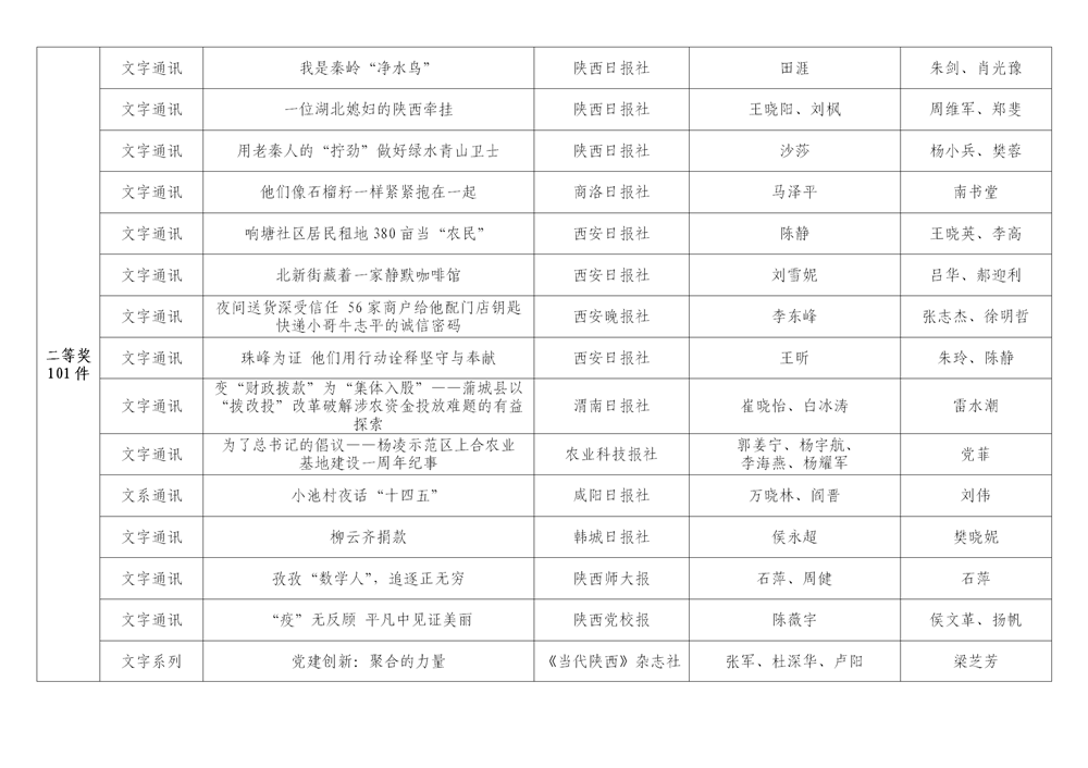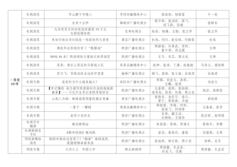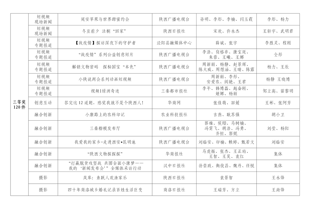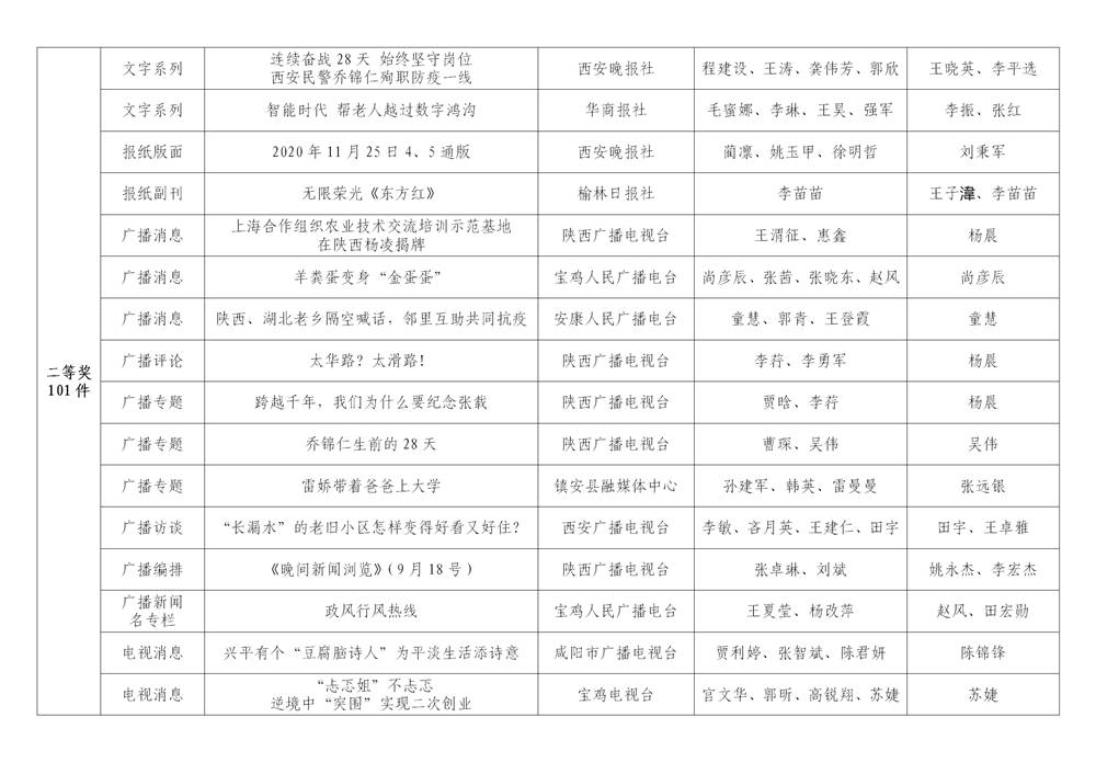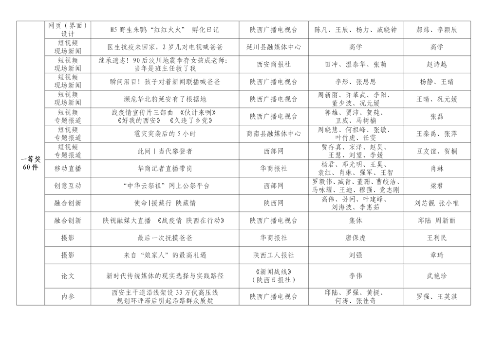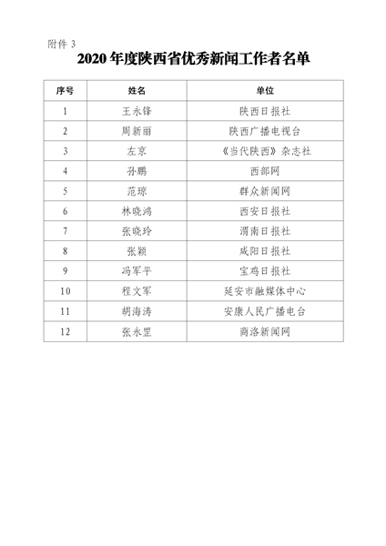 7月6日,陕西省新闻工作者协会公布了2020年度陕西新闻奖、陕西省优秀新闻工作者评选结果,最终评定2020年度陕西新闻奖获奖作品281件,其中一等奖作品60件、二等奖作品101件、三等奖作品120件;10件作品获2020年度陕西新闻奖“中央、省外媒体特别奖”;12名新闻工作者获得陕西省优秀新闻工作者称号。Ynz安康新闻网