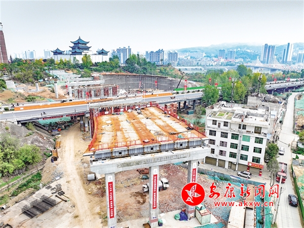 七里沟立交工程是长春片区路网工程的重要子项和控制性工程,是安康中心城区第一座全互通苜蓿叶式市政立交大桥,2022、2023年连续两年列入市级民生实事票决项目。项目的建设,对解决高新、江北、黄沟等片区交通转换,打通长春路、填补城区路网空白、提升中心城市形象有着重大意义。项目位于西津汉江大桥北头,路线总长1200米,设计标准路幅宽度40米,双向六车道。图为11月上旬的施工现场。