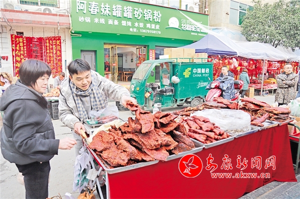 在岚皋县城兴隆街、建设路农贸市场,腊肉、香肠、腊排骨、腊猪蹄、血豆腐等等纷纷亮相,为市民提供了丰富的年货。廖霖 摄