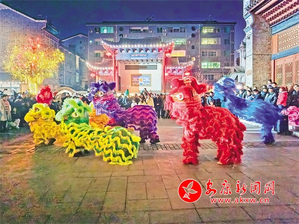水西门小广场上的烧火狮表演引得观众连连赞叹。赵华斌 摄