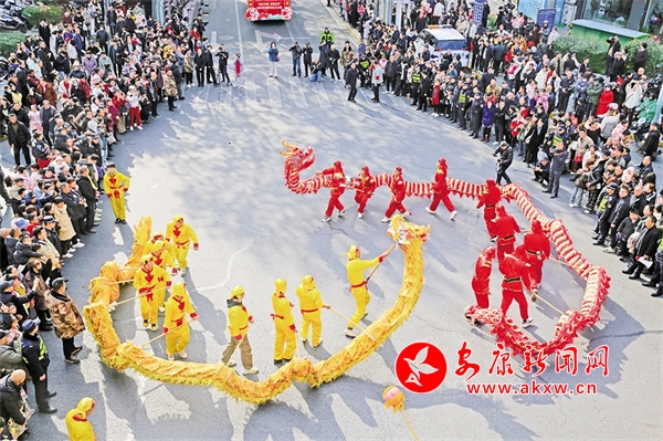 金州广场的舞龙表演吸引众多市民朋友驻足。李黎 摄
