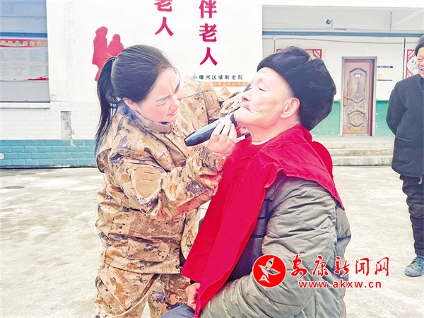 3月4日,镇坪县曙坪镇民兵队伍与志愿服务队伍携手走进曙坪敬老院,开展学雷锋志愿服务活动。薛荣莹 摄