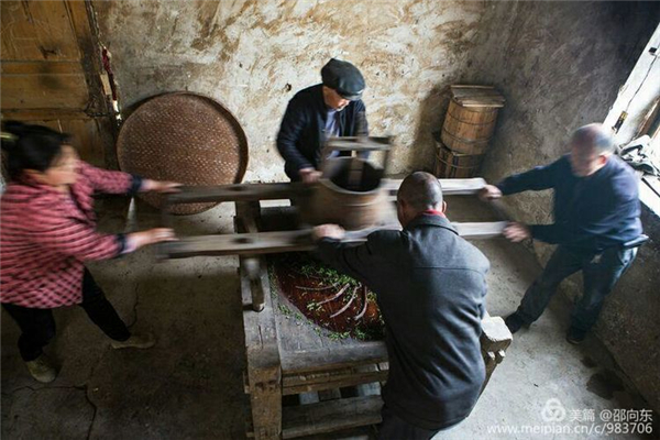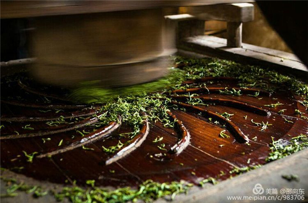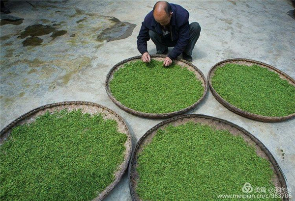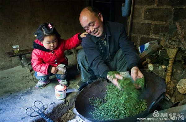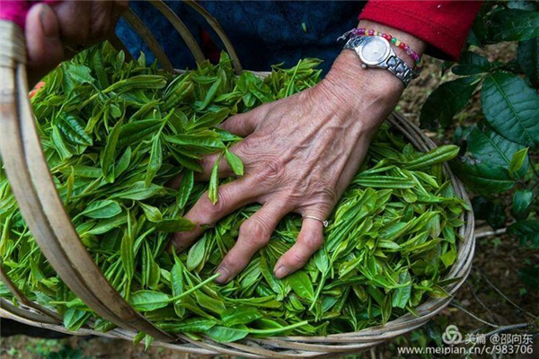 一群群花红柳绿的采茶人,依着茶山一字排开,嬉笑逗乐间两手如飞梭,一片片毛尖芽头便攥入手中,落入竹篓,其稳、准、快、灵如同魔术。初产之春独早银针每斤芽头约四万枚,左右误差不出百余,据说这明前银针唯有这十七、八的山妹子亲手采摘,制出的茶才别有一番甜香之气,这也是传统紫阳贡茶奥妙之所在。