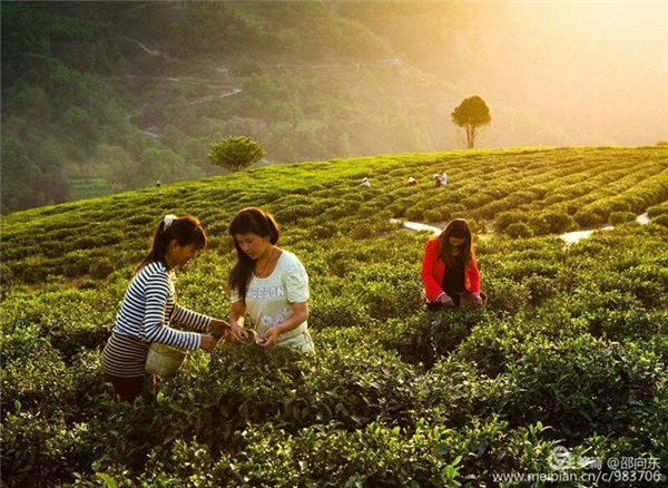 日上三竿,带着新采摘的嫩叶走进茶农新居,好客主人必是要捧出好茶招待,掬一捧屋后的山泉水,烧沸晾至八九成热,水壶高高提起,水注一线,向着客人凤凰三点头,茶在热流中凡翻滚,被浓缩收藏的春意也在激荡中被唤醒,轻缓的舒展着腰肢,一枚枚嫩芽恢复了清纯,如同天鹅湖畔的仙子随杯中的水流旋转跳动,直到静水曲终,那蕴藏在叶脉芽尖的漫山春意亦缓缓释放出来。押上一口一缕清香沁入肺腑,那是女儿十八春的味道,任你墙高门紧,早已飘出十里八乡了,这样的季节怎能不上茶山不踏春呢?