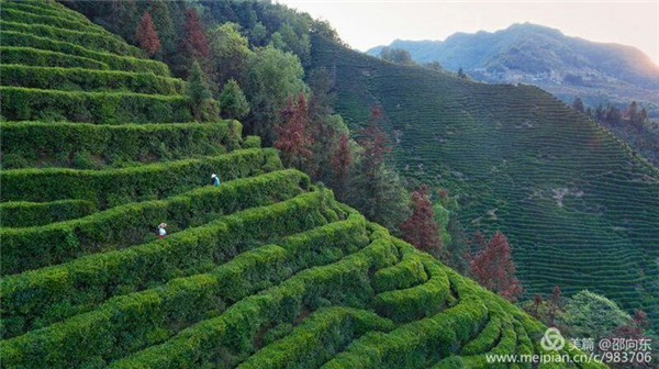 如今的紫阳,江还是那条江,梁还是那道梁,茶却是越来越精致香纯了,每到三月嫩芽初发,江雾从水面慢慢升腾,毛茸茸的芽尖顶着露珠在晨光中闪耀,竹林掩映着白墙黛瓦,一缕炊烟合着柴鸡的打鸣懒散飘过,采茶的姑娘腰系小竹篓,三五结伴在茶山穿行,人未见声先来,嫩绿的树林间摇摆着水蛇腰,老人说那是好山好水、好茶好饭养出的西妹儿。