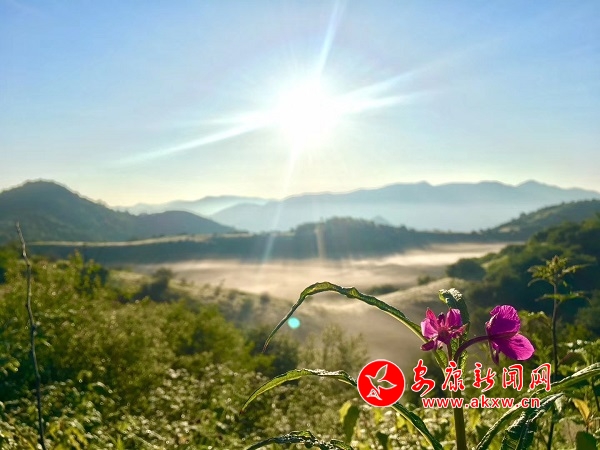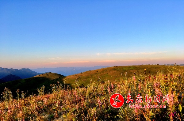 甸内不知名的小花争相绽放。远观整个草甸呈现出一片朦朦胧胧的粉绿,置身其中,会感觉到一种无比浪漫的温馨。iYr安康新闻网