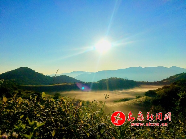 初阳下,万道金光里,衬托着天边露白,云雾徘徊山峦之间久久不散。iYr安康新闻网