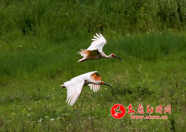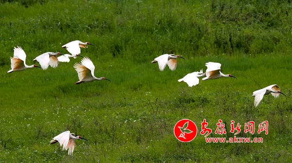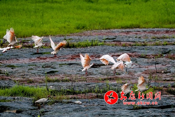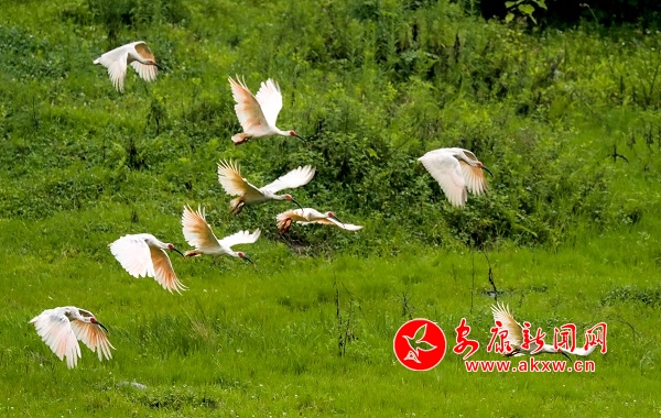 7月18日上午,22只野生朱鹮在汉阴月河草滩出现。据当地人介绍,近期就已发现十几只朱鹮在此栖息,当日朱鹮数量有所增加。据悉,我市自然生态环境不断得到保护后,非常适宜朱鹮的生存,近几年来已陆续发现朱鹮来到我市汉江水域和部分县域小河觅食。 皮勇维 摄vvc安康新闻网