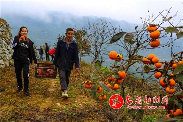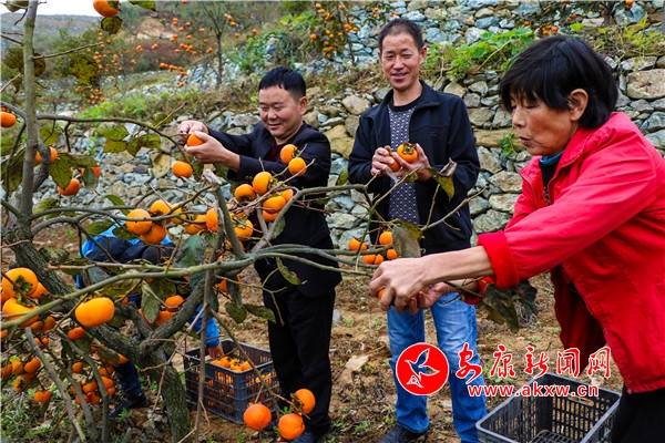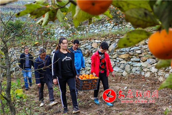 10月14日,金秋时节,位于安康市汉滨区瀛湖镇大明村尤家湾的大明农业园区内,300亩日本阳丰甜柿相继成熟,一树树红橙橙的大柿子如同盏盏小灯笼挂满枝头,煞是喜人。目前,工人们正抢抓时令,加紧采摘,以便向安康城区各大超市供货。据园区负责人胡代安介绍,矮化后的日本阳丰甜柿亩产5000斤以上,上市后价格在3到4元左右。张昊 摄jbb安康新闻网