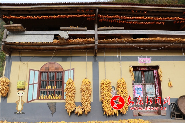 10月30日,汉滨区茨沟镇西沟村,家家户户都忙着制作柿饼,房前挂满的玉米、柿子与改造好的民居形成了一道美丽的乡村秋景。吴亚君/摄