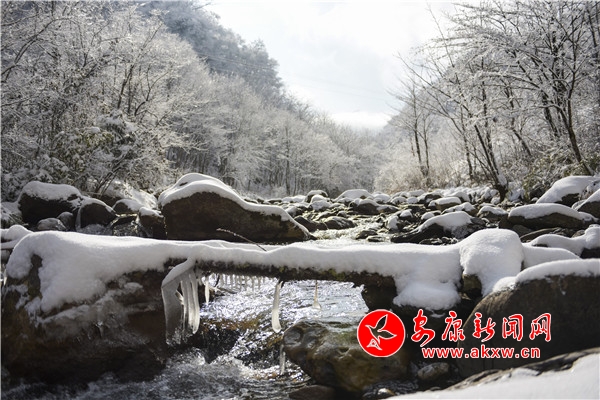 在岚皋,有一种景总也看不够,那就是神河源的雪景。神河源的雪景有着女子般的清奇秀丽,那银装素裹、玉树琼花的景观似梦似幻,让人流连忘返。李辉苗/文图