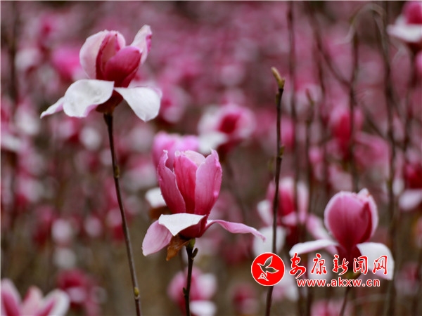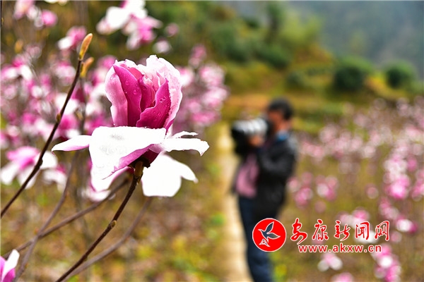 近日,平利县广佛镇八角庙村5000亩辛夷花绚丽绽放,游客纷至沓来,观赏拍照。(王韬/图文)