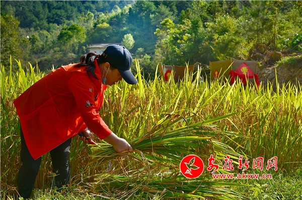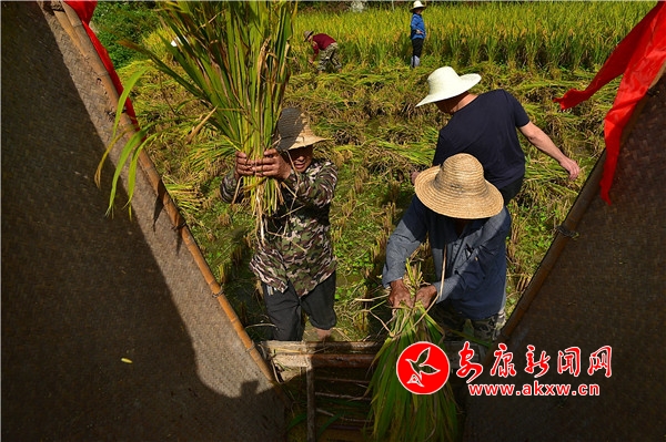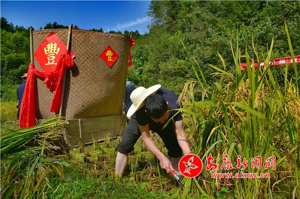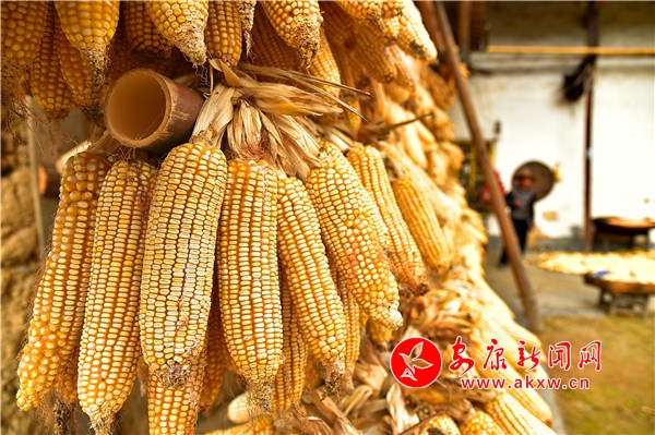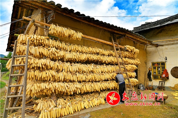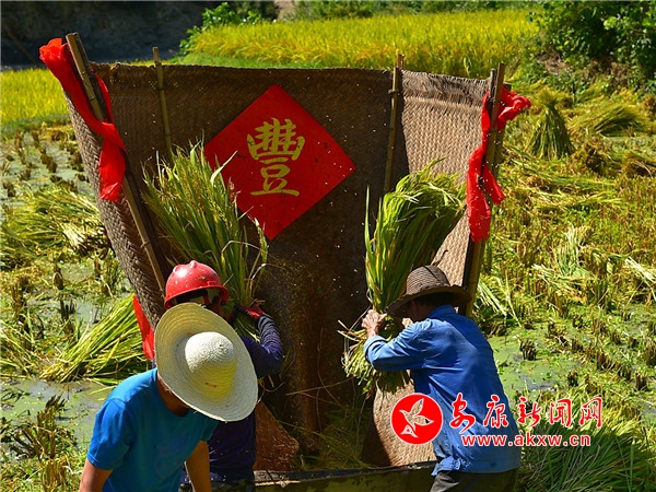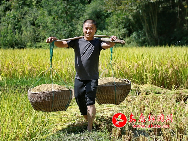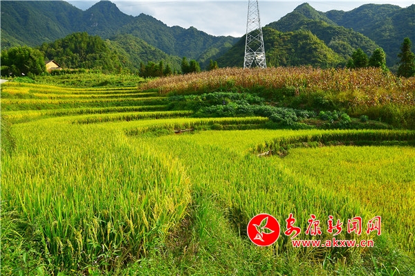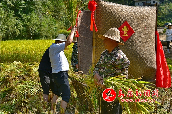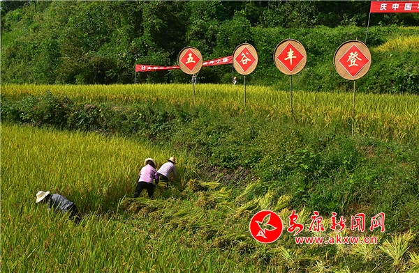 秋日,平利乡村田园间梯田层层,稻浪滚滚,饱满的谷穗压弯了稻杆,放眼望去,遍野铺金,空气中也弥漫着淡淡的稻香。在西河镇女娲山村三里沟原生态水稻田里,人们按照传统的习俗和方式收割水稻,数十位村民手持镰刀一字排开,迅速挥舞着手中的镰刀,将金黄的稻穗割下并整齐的堆放。打谷人则分为两组,两人一组,交叉替换的将手中的稻秧在拌桶里反复甩打脱粒,拌谷声“嘭呲嘭呲”有节奏地作响,声势颇为壮观。与此同时,广佛镇松河村李家坡的农家小院已堆满收回来的苞谷,郭老汉正在将苞谷壳撕开,编成串挂在屋檐下的竹竿上晾晒,金黄的苞谷棒子整齐排列,俨然一幅乡村小院秋实图。