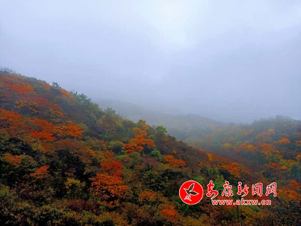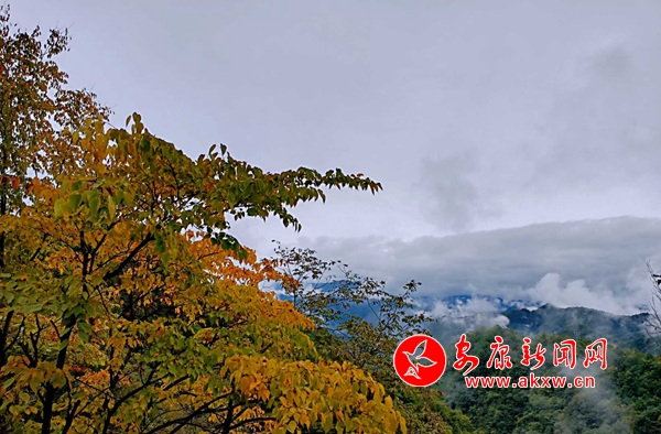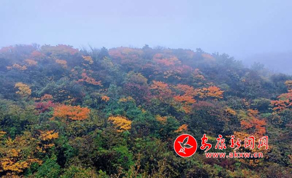 仲秋时节,一场细雨过后,秦岭深处的宁陕县,犹如打翻了颜料瓶,叠嶂的峰岭五彩缤纷、锦翠斑斓。(通讯员 谭海波)