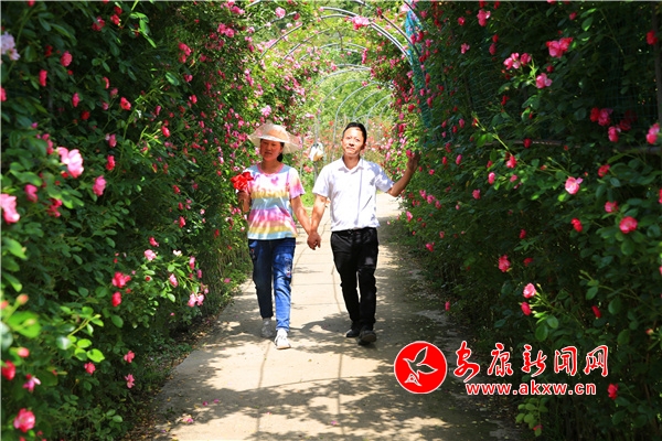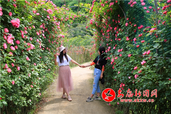 从安康城区出发,沿包茂高速至流水东下,再沿库迁路行约6公里便到达汉滨区流水镇田心社区。在这里,两百余亩玫瑰(月季)花开正艳,一幅天蓝水碧花美的绚丽画卷悠然展现。走进园中,犹如置身花海,微风吹来,一股股花香扑鼻而来,玫瑰、月季、蔷薇等各种娇嫩欲滴的花儿令人沉醉,一簇簇,一丛丛,妖娆美丽。前来赏花的游人络绎不绝,大家观赏美景的同时,不时拿出手机在花丛中自拍、合影。(文图/吴亚君 刘一薇 胡智贤) tAx安康新闻网