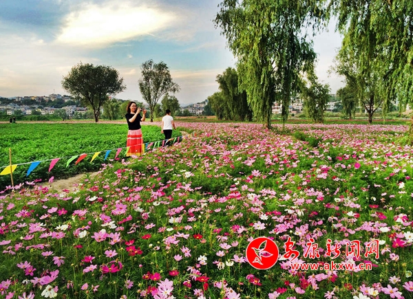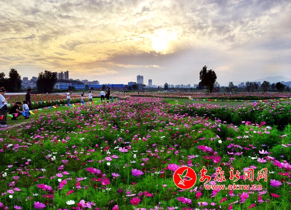 近日,位处安康东郊黄洋河畔城东新区绿地公园数百亩格桑花竞相开放,如茵的草地,荡漾的花海,每天吸引着络绎不绝的市民前来观赏和游玩,很快成为安康新的网红打卡地。 (摄影 赵波)Kjr安康新闻网