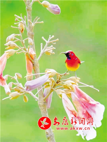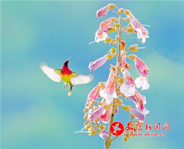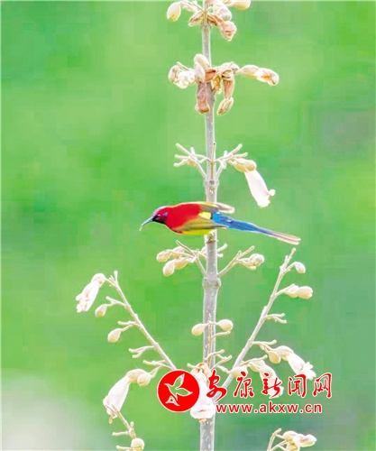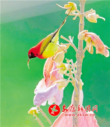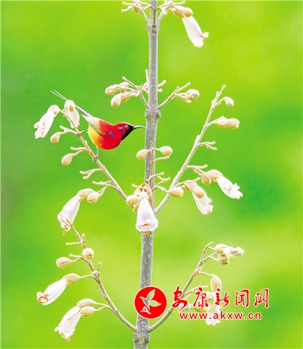 桐花凤,是经常出现在古代文人墨客笔下的吉祥鸟。但因很多人从未见过桐花凤,遂将桐花凤与绿毛幺凤等混淆起来。经今人翔实考证,才证实古“桐花凤”就是现今的“太阳鸟”。太阳鸟象征着祥瑞、吉祥和谐、凤凰齐飞、太阳重升、身化火焰而使人间恢复光明。它还是热爱光明、追求光明、献身光明的象征。太阳鸟也是太阳崇拜和鸟崇拜相结合的产物。太阳鸟世界共有14种,中国有6种,被誉为“东方的蜂鸟”“月下老人”,再加上太阳鸟的寓意如此之好,太阳鸟一直受到人们的喜爱与青睐。(图文 张东风 ) jnP安康新闻网