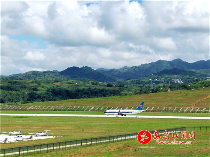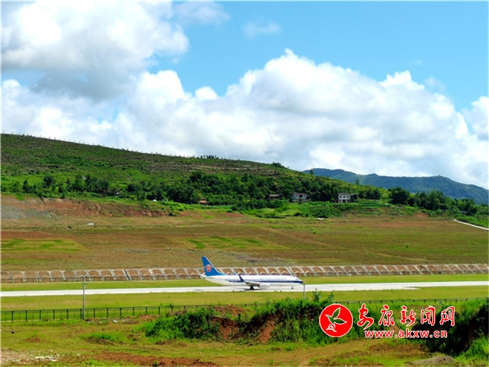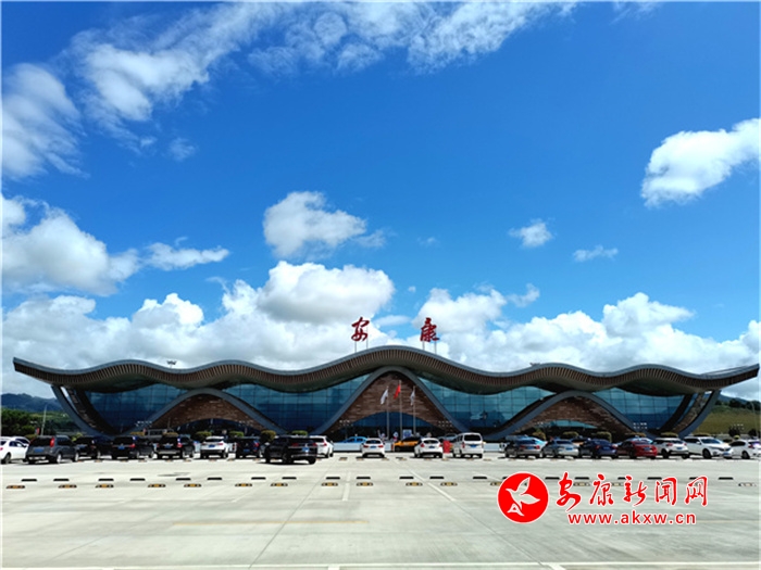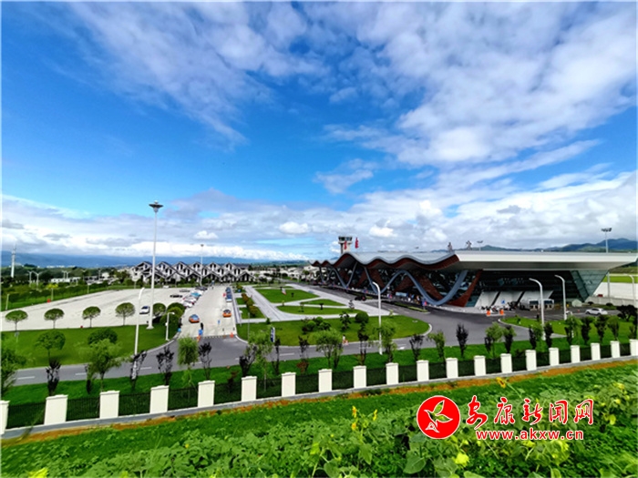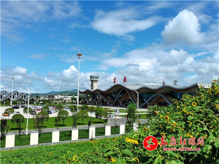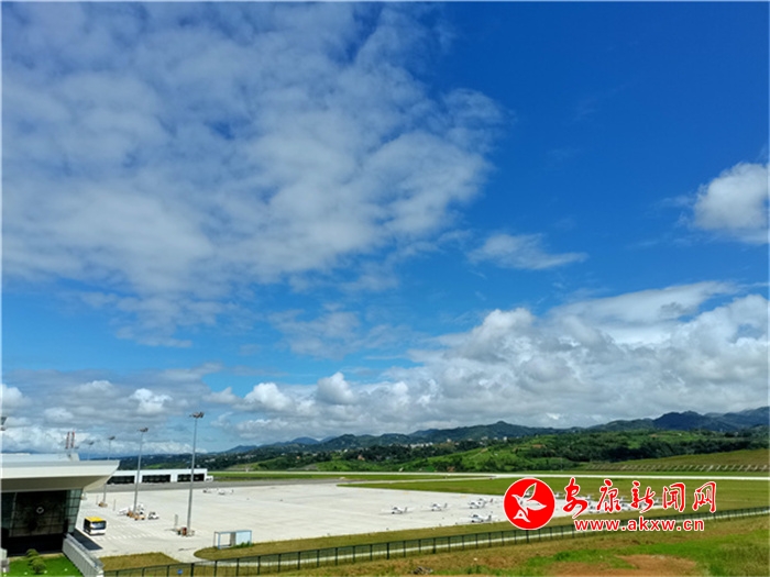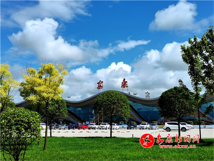 蓝天白云下美丽的安康机场