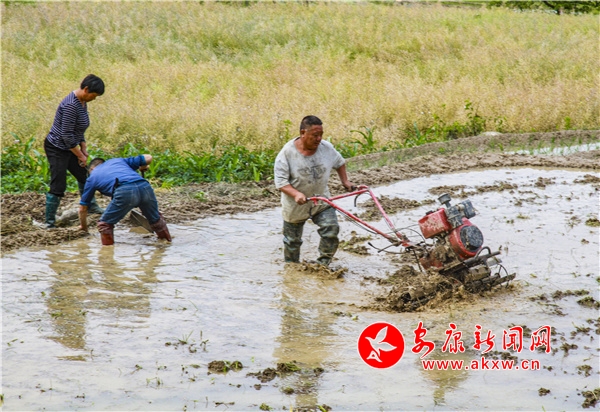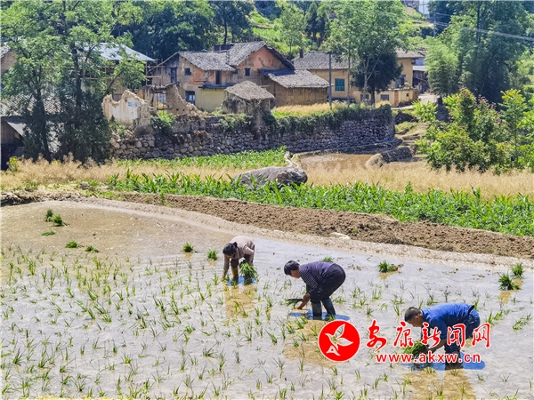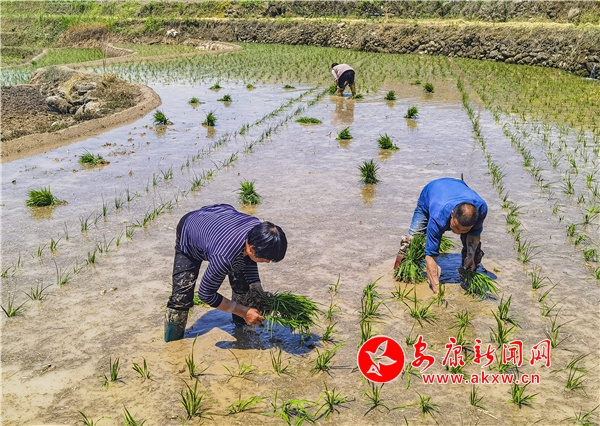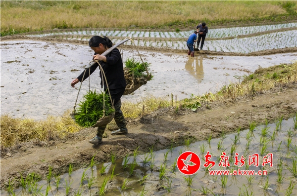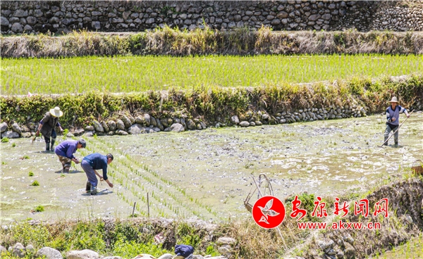 初夏时节,在汉阴县漩涡镇凤堰古梯田里,一个个忙碌的身影点缀在亮丽的梯田画面之间,随处可见农民忙碌的身影,村民们往来的脚步不断映入眼帘。 (图文/陈德模)