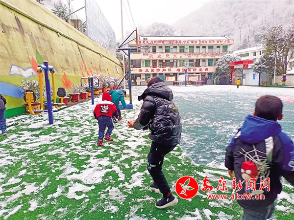 CwF安康新闻网 石泉云雾山镇中心小学迎来初雪 谭相华 摄CwF安康新闻网