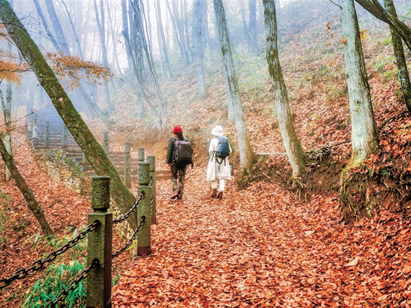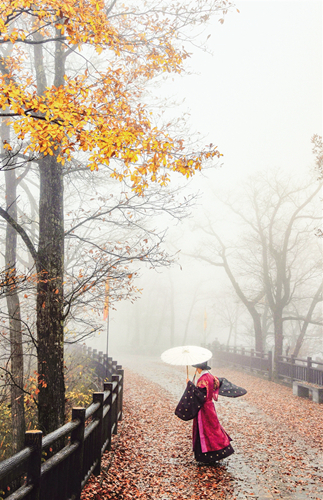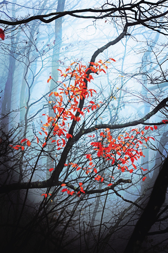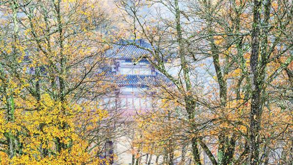 入冬之后,石泉云雾山鬼谷岭景区的树叶红了,登上山顶远眺群山,叠翠流金,云雾缥缈,宛如人间仙境。