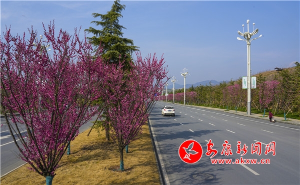 一场淅淅沥沥的春雨过后气温急剧回升,天气回暖,伴随着这大好天气,安康高新区沿线的部分道路旁,粉嫩娇艳的樱花竞相开放。一团团、一簇簇包裹着整个枝头,蜜蜂在花间飞舞。沿路望去,密密匝匝的花朵宛如两条粉红色的缎带在春风的吹拂下起舞,在路边绿色草坪的映衬下更显妖娆。(图文/李俊)PZU安康新闻网