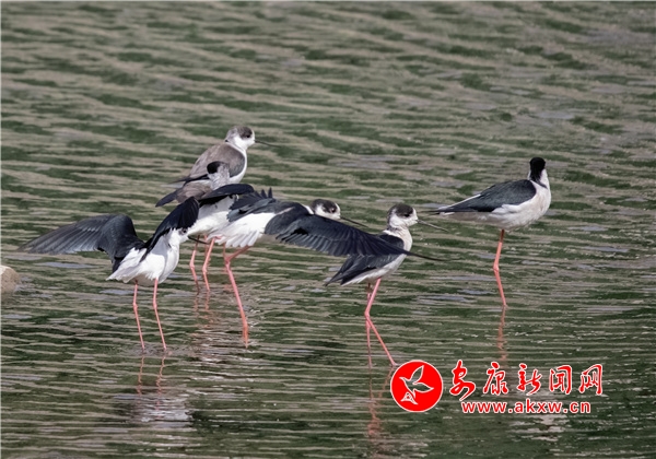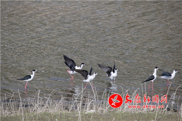 随着汉阴县生态环境的改善,越来越多的候鸟驻足该县觅食、栖息。近日,在汉阴县人工湖内,一群黑翅长脚鹬时而空中飞翔,时而浅滩处嬉戏觅食,受到了鸟类摄影爱好者的关注。黑翅长脚鹬,体羽由黑白两色构成,其红色的脚细而长,颜值颇高。(图文/尹正军 黄智发 贺珍珍) CuZ安康新闻网