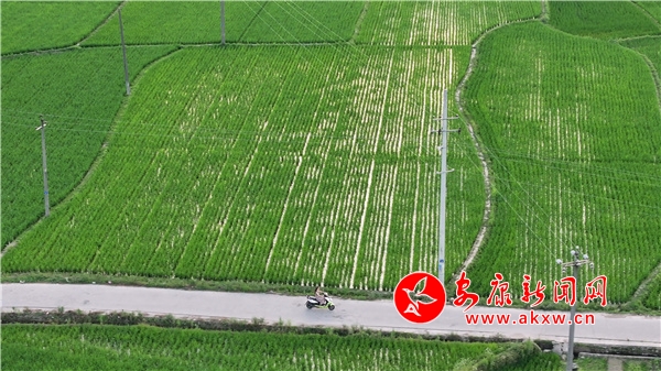 眼下,汉阴广阔的田园里水稻连片,绿意盎然,微风吹拂着翠绿的秧苗,昭显着夏日的蓬勃生机,一幅如诗如画般的乡村美景徐徐展开。从空中俯瞰汉阴县平梁镇,阡陌纵横的稻田与连绵起伏的青山、错落有致的村居、纵横交错的田园绿道相映成趣,如诗如画的田园美景也吸引了不少鸟儿恣意嬉戏。汉阴县有耕地面积32万亩,其中水田12万亩,素有安康“白菜心”之称。今年全县水稻栽种面积8.95万亩,在“藏粮于地、藏粮于技”的总体要求下,六月初已完成插秧工作。 图文/黄智发gWb安康新闻网