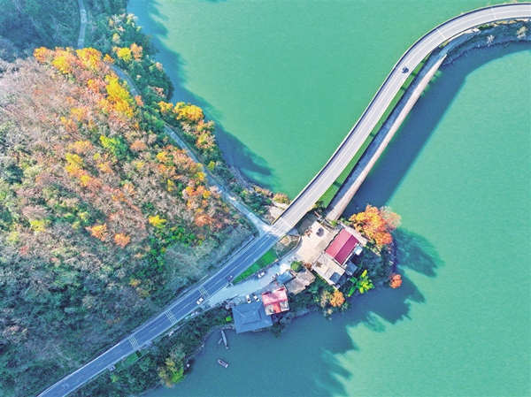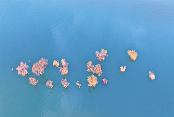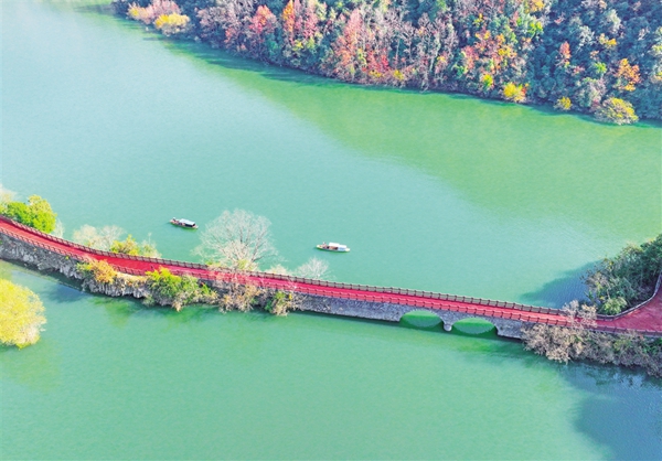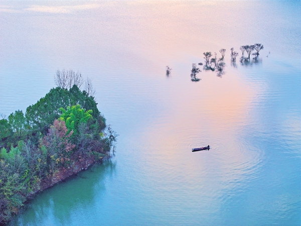 该景区有远观景点织女石、鸟语花香玉兴岛、爱情主题金螺岛、休闲胜地翠屏岛等三岛一远观景点。以游船联络水上交通,“行船向三岛,鸥鹭共远近”,冬日里的瀛湖更是给游客展现出一幅浪漫、诗意、氤氲的唯美画卷。(李成宝 文/图)