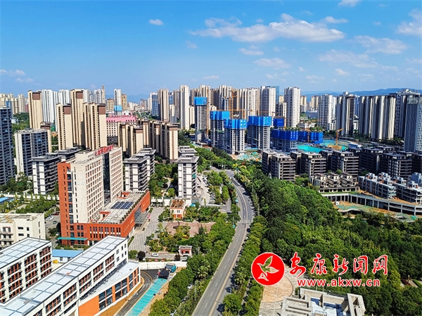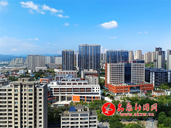近年来,通过不断建设发展,安康高新区城市面貌日新月异。凌空俯瞰,幢幢高楼在蓝天白云映衬下散发出浓郁的现代气息。(通讯员 赵波)
