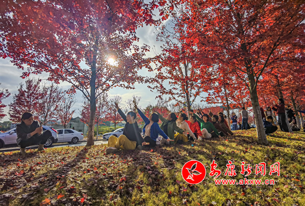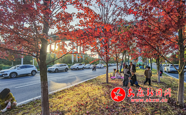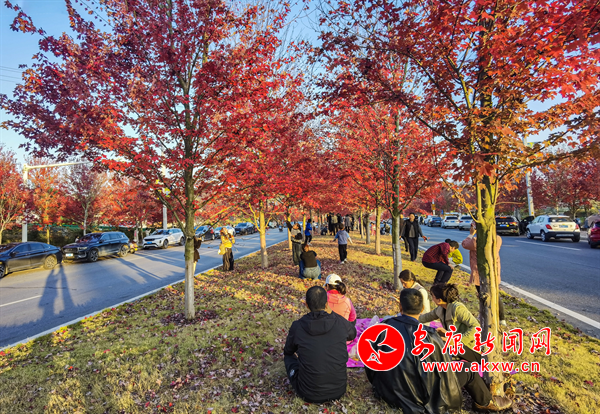 安康富強飞机场大道的红叶进入红叶最佳观赏期,每天有数百人在这里观赏,拍照和打卡,留下红叶的美好瞬间。(图文:陈德模)