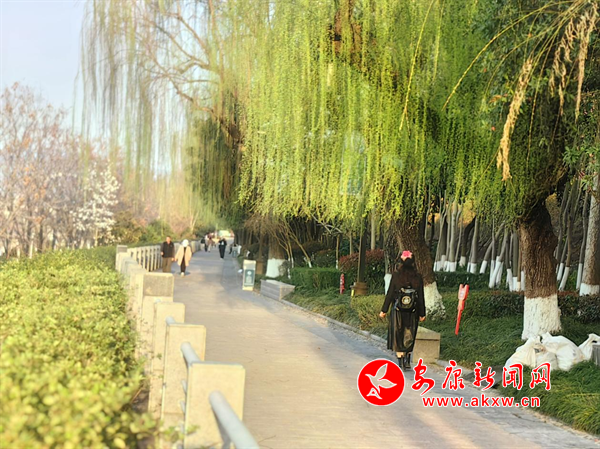 春日的汉江边,阳光和煦,微风轻拂。柳树悄然换上了新装,嫩绿的柳芽儿如同细长的翡翠,挂在那些柔软的枝条上。阳光洒在柳芽上,更显得生机勃勃。每当微风吹过,柳条随风轻摆,柳树下,三五成群的人们或漫步或闲聊,享受着春日的宁静与美好,让人心生欢喜。(通讯员 郑时根) rc3安康新闻网