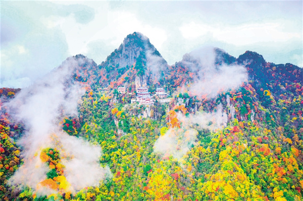 岚皋的山,兼具秦岭的雄奇和巴山的灵秀,地表常绿、四季多彩。植被覆盖率超过 90%、森林覆盖率达 80%以上,不仅有云中净土南宫山,也有古烽火遗迹全胜寨,还有旷美神怡巴山大草甸。全县已开发 230 余处景区景点,这里正以南宫山为笔,南宫湖为墨,挥毫书写“两山理论”的岚皋答卷。
