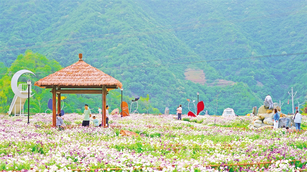 5月的白河,青山如黛,绿意蓬勃。乘车沿着县城二级路走进位于构朳镇凉水村的百福园花园,眼前骤然铺开一幅色彩斑斓的画卷。牵牛花如彩色小喇叭般昂首,小雏菊似亭亭玉立舞者般轻盈,格桑花如雪域仙子般干净素雅,群芳争艳间,将乡村田园的质朴与浪漫诠释淋漓尽致。草坪野餐、放风筝,露天营地等娱乐项目吸引了众多游客纷至沓来。 (通讯员 周骁)sYR安康新闻网