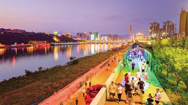 端午假期,我市中心城区汉江畔西坝防洪堤热闹非凡。据了解,西坝防洪堤为市政配套设施及绿化工程,东起金川门,西至三桥,全长1.2公里。堤顶人行步道用塑胶与混凝土拼接,实用舒适;防浪墙采用真石漆装饰,美观耐久;两座长49米的百花长廊,配以水淋喷雾;同时建有时光隧道,白天可观花,夜间可赏景。曾经单一功能的防洪工程,如今成为安康“生态+文旅”的又一新地标。 钱运立 党宏 摄Hrg安康新闻网