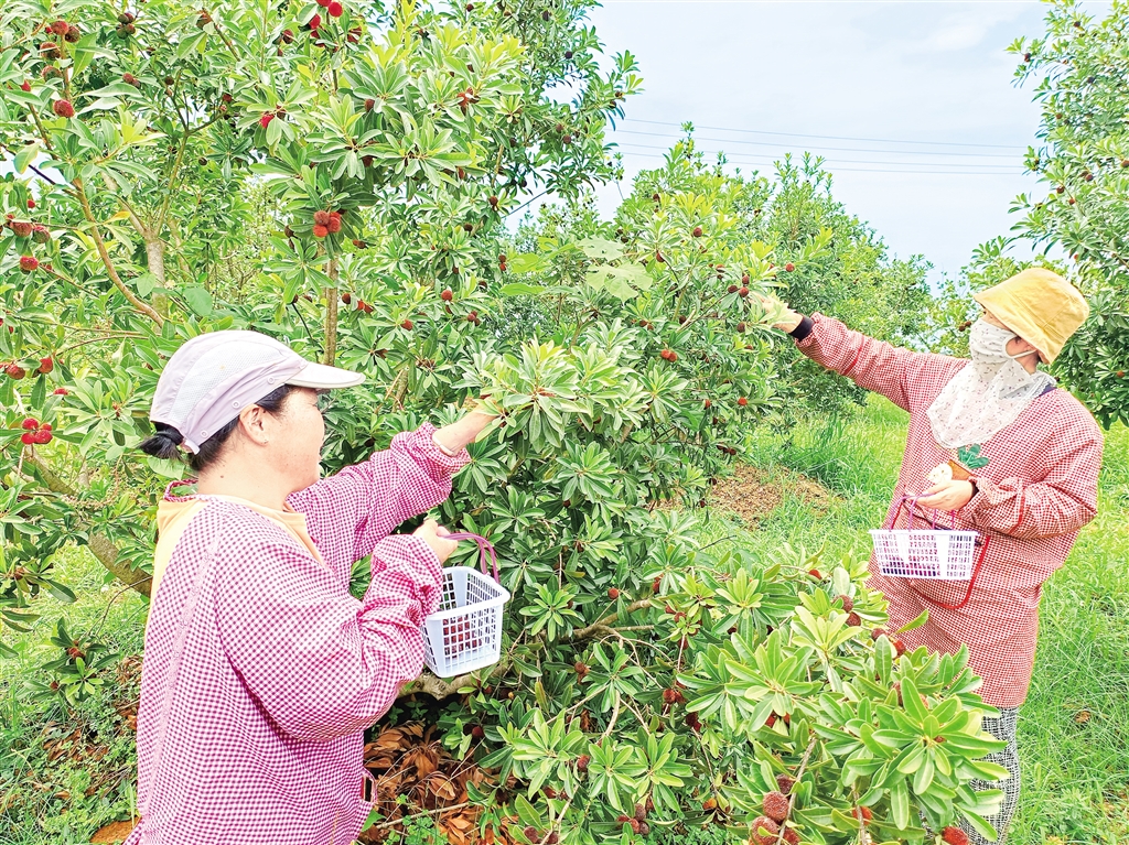 位于恒口示范区唐岭村的伊甸现代农业园区近百亩杨梅进入盛果期,吸引市民前来体验采摘乐趣。该园区2020年引进南方黑炭梅、东魁等杨梅优质品种,深受消费者青睐,带动当地务工群众年人均增收约3000元。(记者 李向军 摄)Cry安康新闻网