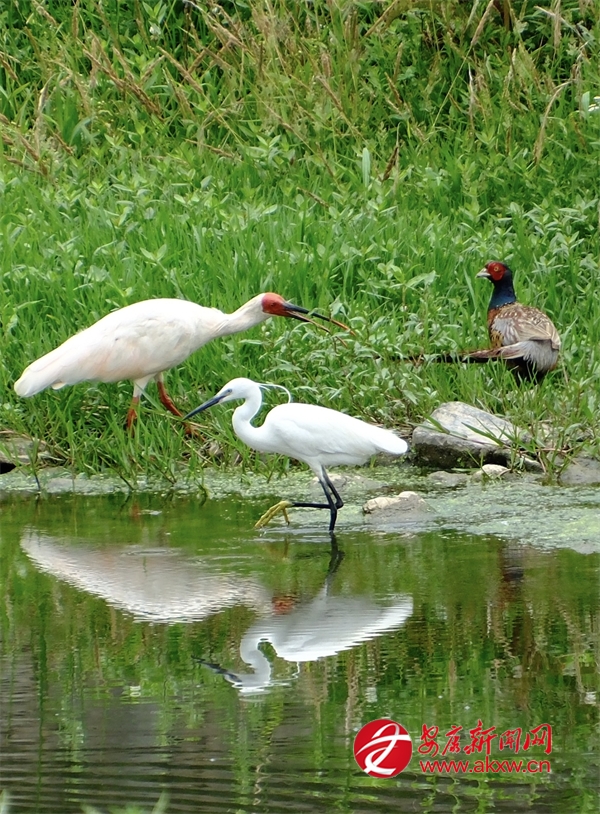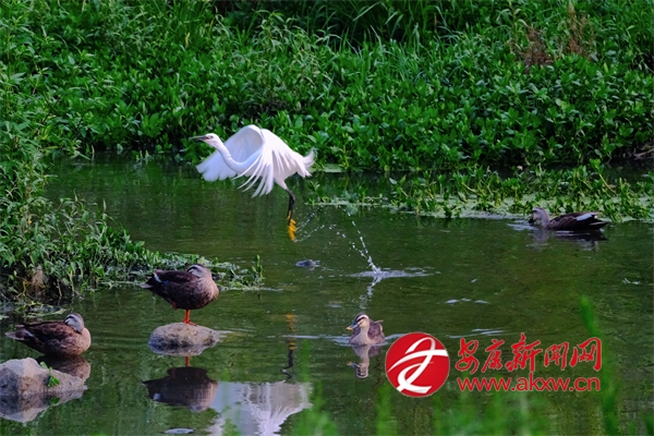 晨光熹微或夕照熔金时,朱鹮掠过荷塘,翅尖点水衔起游鱼;苍鹭与白鹭独立浅滩,如雪影倒映清波;牛背鹭追逐耕牛脚步,惊起的草虫成了它的盛宴;更有池鹭、黑水鸡、环颈雉、白胸苦恶鸟穿梭林间,声声清啼与潺潺水韵交织,谱写月河生生不息的生态乐章。