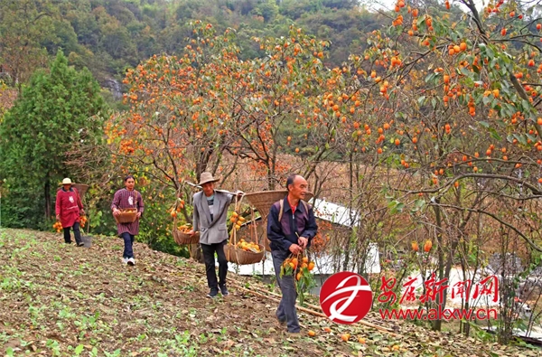 眼下正是柿子成熟的季节,白河县城关镇安福村芍药花园区附近漫山遍野的柿子,像一个个橘黄色的小灯笼挂满枝头。uvX安康新闻网