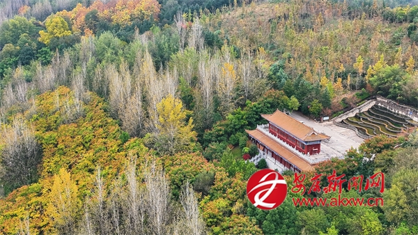 初冬时节,汉阴的龙岗公园内外层林尽染,与人文景观交相辉映,构成一幅流动的山水画卷。公园地势连绵,园内步道蜿蜒,亭台错落。从空中望去,茂密的林木披上了红、黄、橙交织的花衣裳,与常绿树种相互点缀,犹如大地的调色盘。山顶的龙岗阁巍然屹立,在金黄乌柏与如火枫叶的簇拥中,成为整个公园的视觉焦点。登阁远望,汉阴县城全貌尽收眼底,月河如带穿城而过,与秋日晴空共同勾勒出“水天一色”的壮美图景。(通讯员 文婷 徐欢) 7Mq安康新闻网