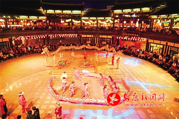 春节期间,岚皋县举行了灯光秀、舞狮、采莲船等系列民俗文化活动。陈阳 摄EVM安康新闻网