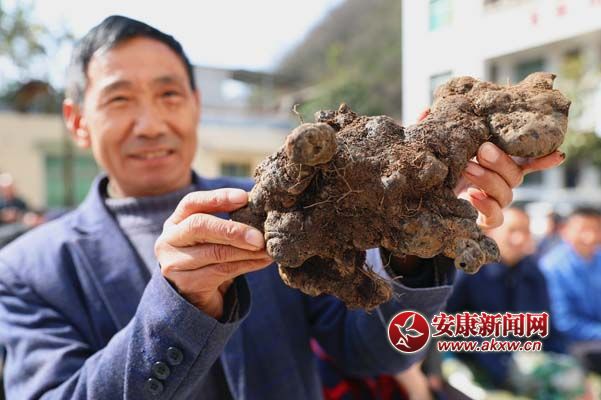 贫困户展示自己领取的猪苓种子安康新闻网讯(通讯员 杨宁 党欣春)3月12日,宁陕县梦阳药业有限公司满载着猪苓种子的“直通车”来到宁陕县四亩地镇,现场举行了猪……