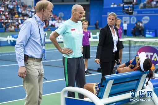 9月28日,王蔷(右一)在比赛间隙因伤而感到痛苦。 新华社记者熊琦摄 新华社武汉9月28日电(记者喻珮)28日傍晚,2018武汉网球公开赛半决赛焦点战之一在中国姑……