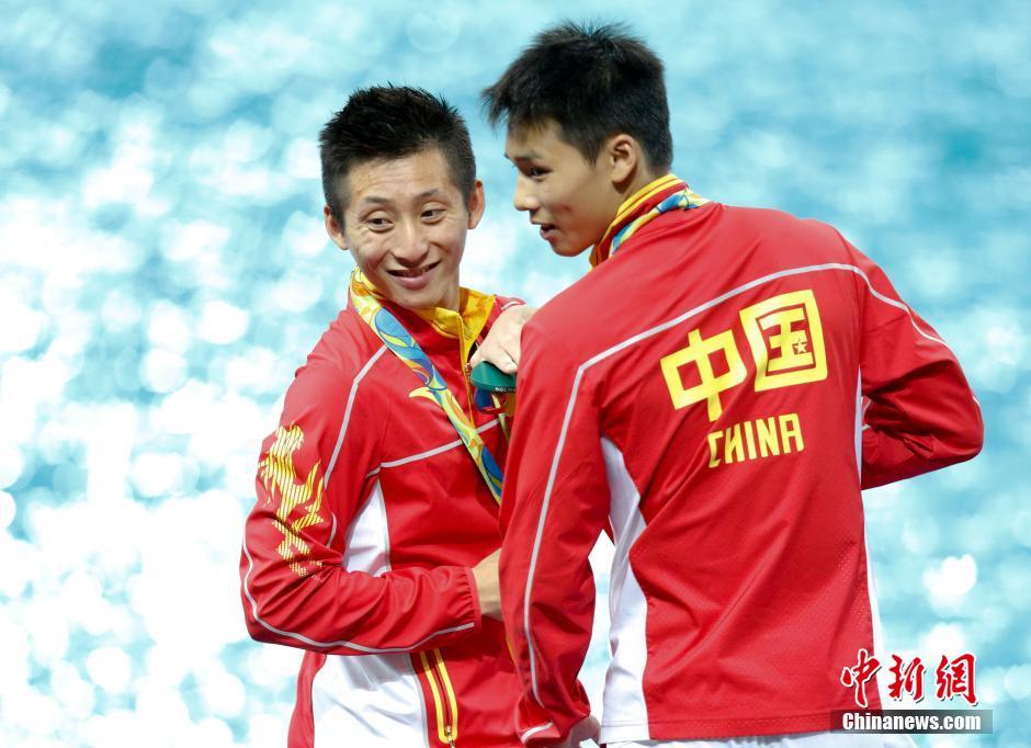 当地时间8月8日,在里约奥运会男子双人十米台决赛中,中国组合林跃/陈艾森一路领先,以巨大优势夺冠,中国队也实现该项目四连冠。中新网记者 杜洋 摄