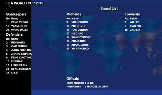 稍早前,亚足联官网公布了双方23人大名单,中国队人员名单与上场对阵乌兹别克斯坦一致,但号码却发生了变化,其中3名门将号码都有改变,高准翼成为1号,武磊身披3号。北京时间今天下午,亚足联更新了中国队23人名单,人员方面没有变化,只是更新了球衣号码,而新号码与中乌之战完全相同。