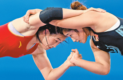 当日,在第十三届全运会国际式摔跤女子自由式69公斤级决赛中,周凤战胜王娇,获得冠军。ADD安康新闻网
